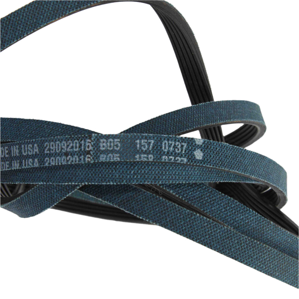The Dryer Drive Belt wraps around the motor and pulley and rotates the belt and the belt tumbles the drum. If the drum of your appliance isn't operating as expected, replacing this part may alleviate the issue. To access the part, first lift up the lint screen cover and remove the two screws. If you have the type of lint screen that has the cover built in, just pull it out and then remove the screws. Next, take a putty knife around the edge of the top of your dryer and find the release clips--press these in to release the top of the dryer so you can swing it open. The front panel also needs to be removed to replace the belt. This long slender belt measures 93-3/8" L x 3/8" W and features 5 ridges. Replacing this part will require basic hand tools, some disassembly of the appliance and novice repair experience. You must unplug the appliance or shut off the house circuit breaker before installing this part.