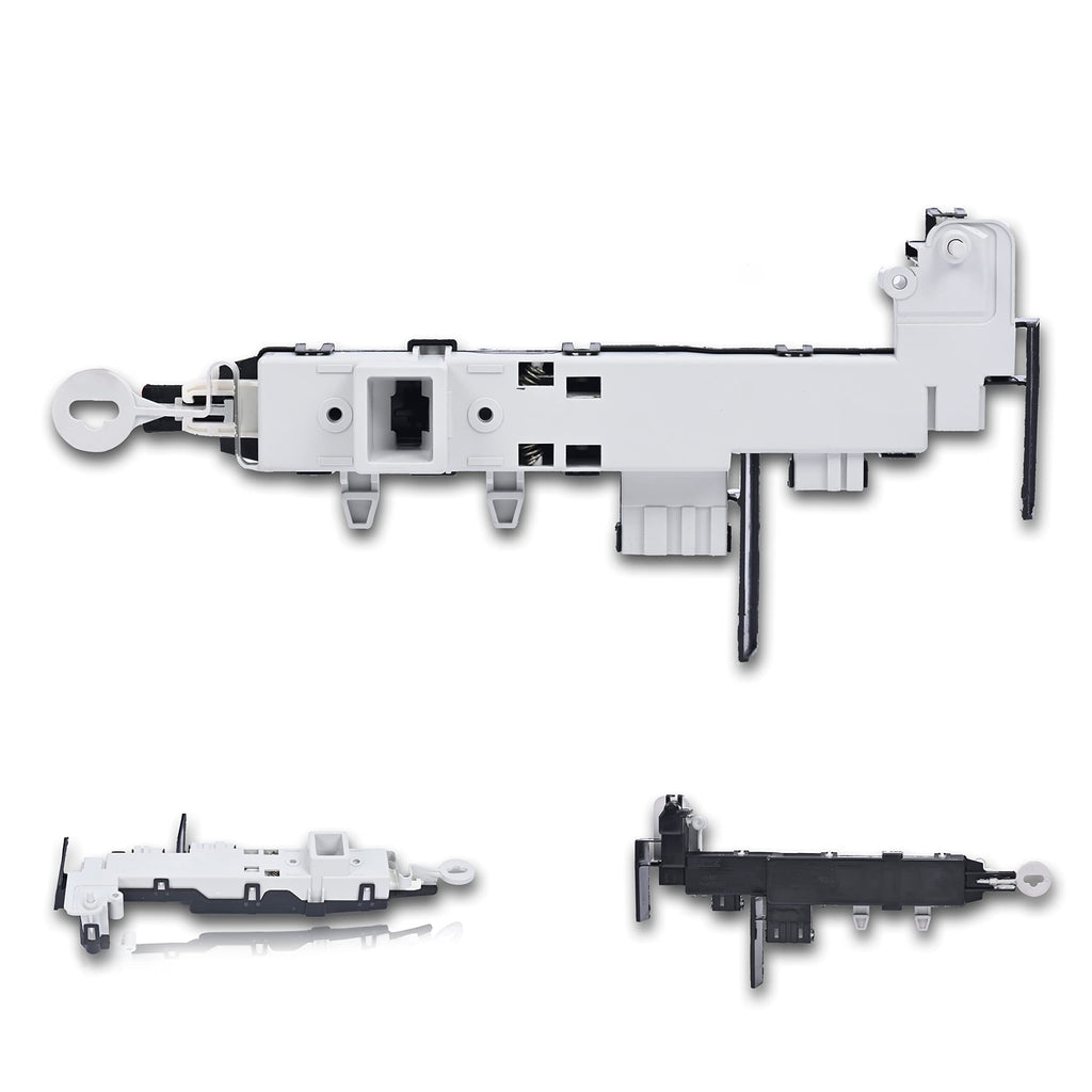 This Front Load Washer Door Lock Latch Assembly secures the washer door shut during operation. Once the washing machine door is closed, the washer can begin operating. If the door lock is defective or has shorted out, the washer door will not latch properly. Make sure when wiring the new assembly, you insert the mounting tabs into their appropriate slots. Replacing the element will require basic hand tools, some disassembly of the washer and novice repair experience. You must unplug the appliance or shut off the house circuit breaker for the appliance before installing this part.